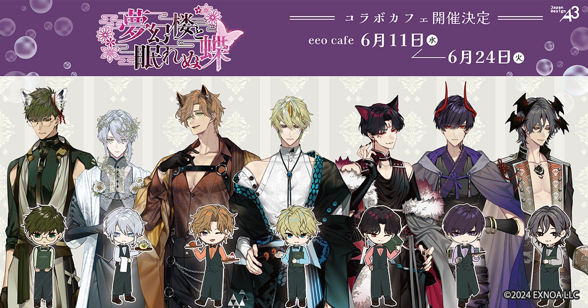 DMM GAMESのオトナの女性向け恋愛ゲーム『夢幻楼と眠れぬ蝶』のコラボカフェが、2025年6月11日(水)~24日(火)に池袋のeeo CAFEで開催されます。