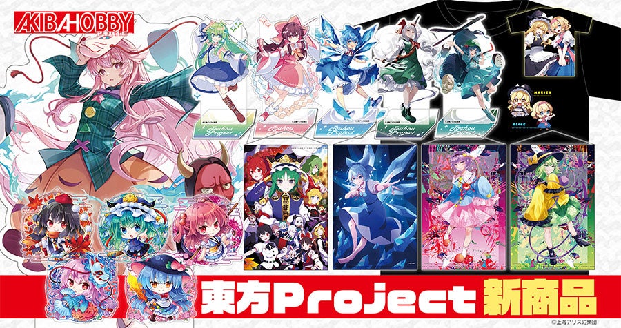 アキバホビーは、東方Projectの新商品としてクリエイターズキーホルダー5種、キャラクターアクリルスタンド6種、B2タペストリー4種、フルカラーTシャツ1種を発売します。