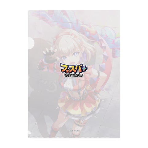 ショップでは、『フェスバ+』のナビゲーターであるマリオンをモチーフにしたTシャツ(3種類)、ゲーム内のウェポンチップイラストを使用したクリアファイル(3種類)、マリオンデザインのスマホケース(iPhone対応、機種により価格変動)を販売しています。