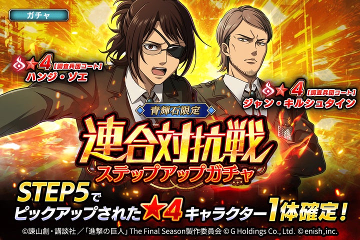 - 『進撃の巨人Brave Order』で連合対抗戦開催、新キャラクターピックアップガチャも開始