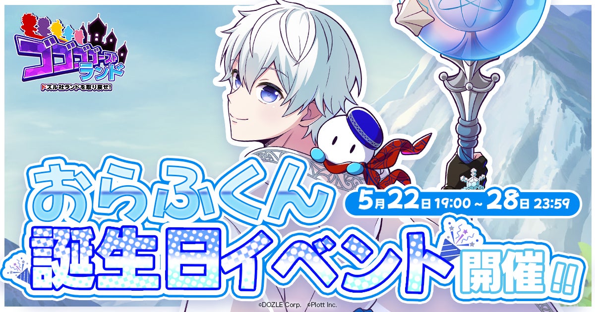 株式会社Plottが運営するスマホゲーム『ゴゴゴゴーストランド | ドズル社ランドを取り戻せ!』にて、ゲーム実況グループ「ドズル社」のおらふくんの誕生日イベントが5月22日19時~5月28日23時59分まで開催されます。