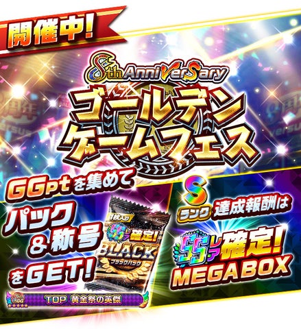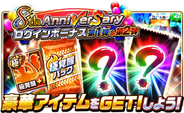 キャンペーン内容は、ログインボーナスで「ありがとう!8th Anniversary SSレア1枚確定!1回無料!MEGA BOX」のプレゼント、8周年記念限定選手が登場するガチャ、協力イベント「8th Anniversary メガクラッシュラッシュ」、特別なスタジアムでの試合、選手レベルが最初からMAXになるキャンペーン、ゴールデンゲームフェスなど盛りだくさん。