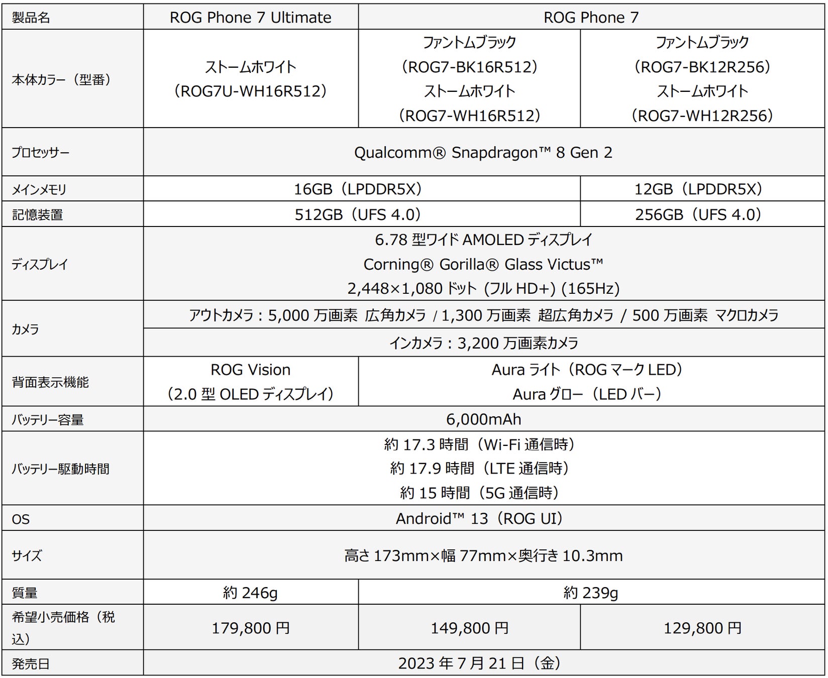 ROG Phone 7シリーズは2023年7月21日より販売開始されます。
