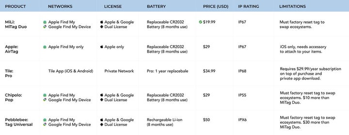 MiLi MiTag Duoは、AppleとGoogleの両方の認証を受けた初のBluetoothトラッカーです。