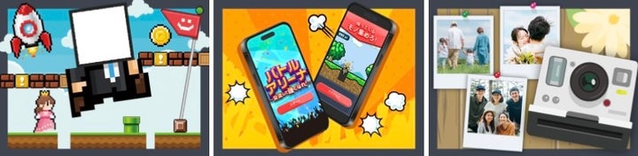 「ゲームカスタム」では、レトロアクションゲームやミニゲームなど複数のゲームテンプレートが用意されています。