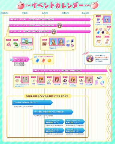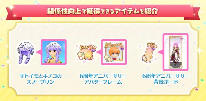 - 「心の願い」イベントや「6周年アニバーサリーメダル」交換、ログインボーナスを実施。