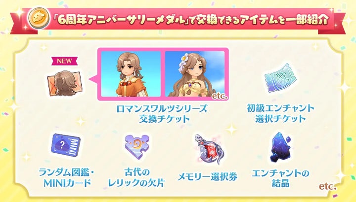 また、「6周年アニバーサリーメダル」を集めることで、豪華アイテムと交換可能。