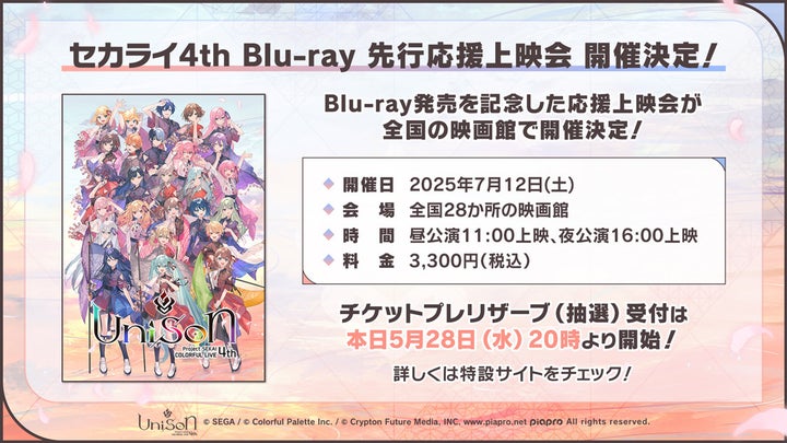 2025年1月に開催された『プロジェクトセカイ COLORFUL LIVE 4th – Unison -』のBlu-ray発売を記念して、先行応援上映会も実施されます。