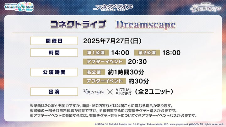 ×バーチャル・シンガーによる「コネクトライブ Dreamscape」が開催されます。