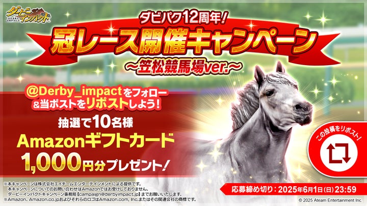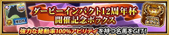 - 『ダービーインパクト』が12周年を記念し、全国8競馬場で「ダビパク12周年記念レース」を開催。