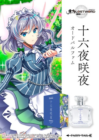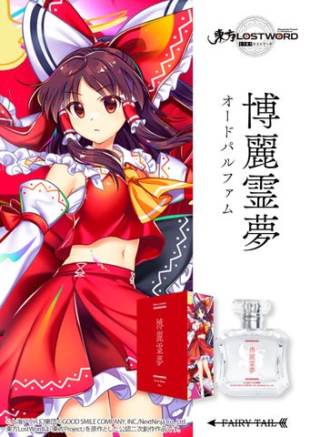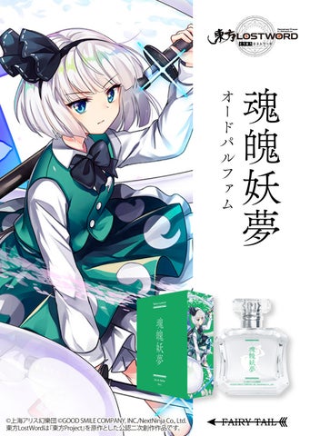 フェアリーテイル株式会社から、博麗霊夢、霧雨魔理沙、八雲藍、魂魄妖夢、アリス・マーガトロイド、鈴仙・優曇華院・イナバ、レミリア・スカーレット、パチュリー・ノーレッジ、十六夜咲夜の9キャラクターをモチーフにしたオードパルファムが発売されます。