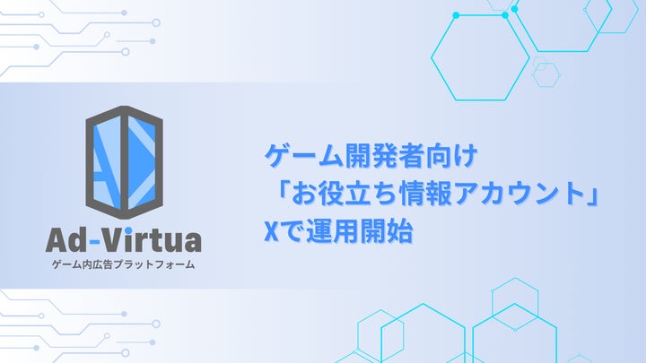 アドバーチャ株式会社が、ゲーム開発者向けの情報発信アカウント「@AdVirtua_dev」をX(旧Twitter)で開設しました。