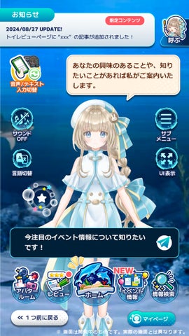 UIはスマホゲーム風で、アバタールームや独自コンテンツも展開。