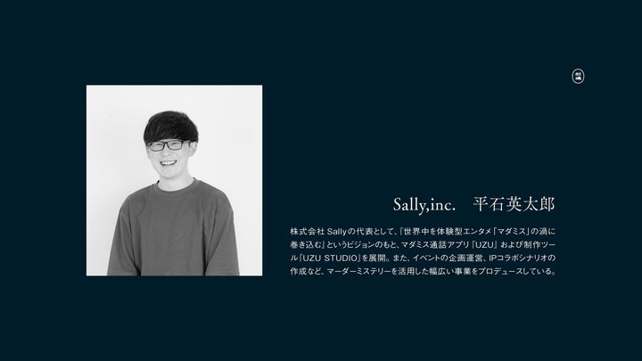 オンラインマダミスアプリ「ウズ」の運営ノウハウや、人気作家陣によるシナリオ制作、経験豊富なGMによる演出設計を通じて、高品質な物語体験を提供する。