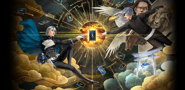 ゲーム内では、カード「神魔札」を使って戦い、AIが生成するオリジナルカードで戦略を深める。