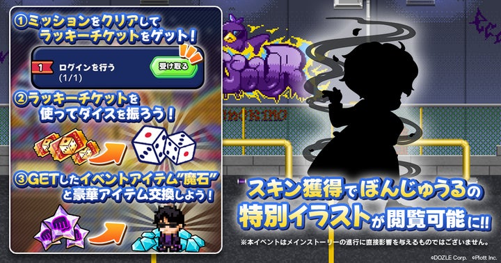 - ラッキーチケットで魔石を獲得し、ぼんじゅうるの特別衣装やイラストと交換可能。