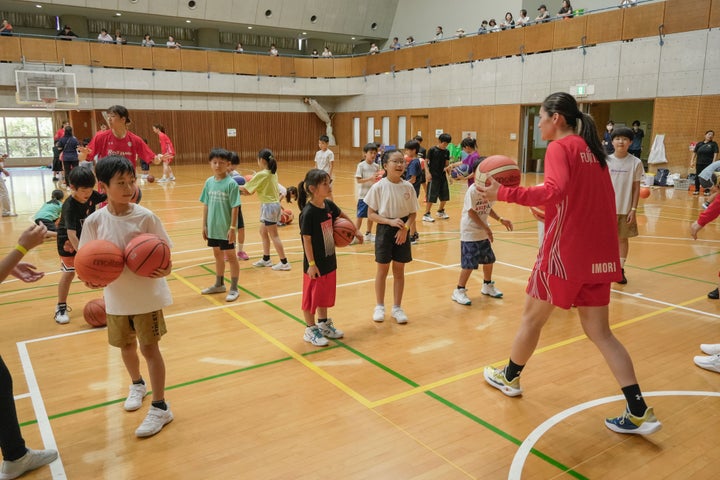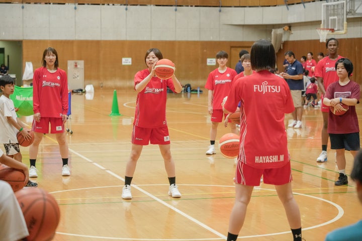 - 7月25日(金)にとどろきアリーナで富士通レッドウェーブバスケットボール教室を開催。