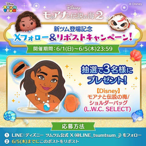 LINEヤフー株式会社が運営するパズルゲーム『LINE:ディズニー ツムツム』にて、2025年6月1日より『モアナと伝説の海』の「導く者モアナ」と「コトゥ」が新ツムとして登場する。