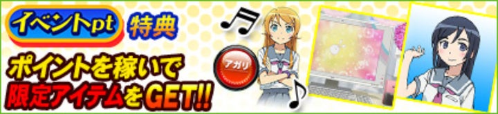 - セガNET麻雀『MJ』とTVアニメ『俺の妹がこんなに可愛いわけがない。』のコラボイベント「俺の妹がこんなに可愛いわけがない。CUP」が開催。