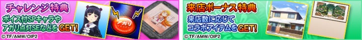 アプリ版ではコラボアイテムを獲得できる特典があり、イベントpt特典としてSPキャラや卓背景、EX背景などが登場。