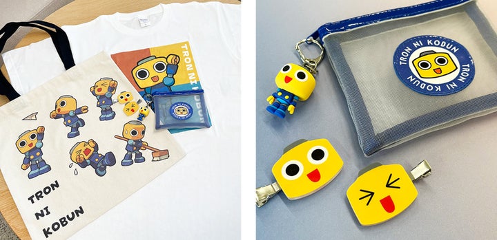• Tシャツ、トートバッグ、メッシュポーチ、ラバーマスコットキーホルダーなど、様々なグッズが登場。