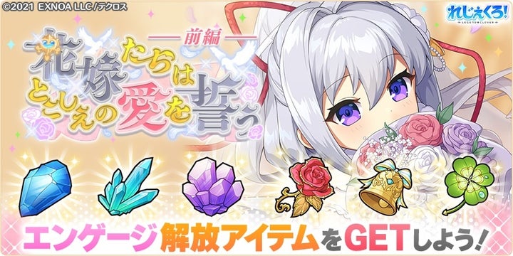 彼女たちが活躍するイベント「花嫁たちはとこしえの愛を誓う・前編」が開催され、限定キャラの出現率がアップするガチャや、エンゲージ解放アイテムなどの報酬が手に入るイベントが実施される。