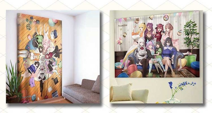人気イラストを使用したカーテン、まくらカバー、特大アクリルスタンドなどがラインナップ。