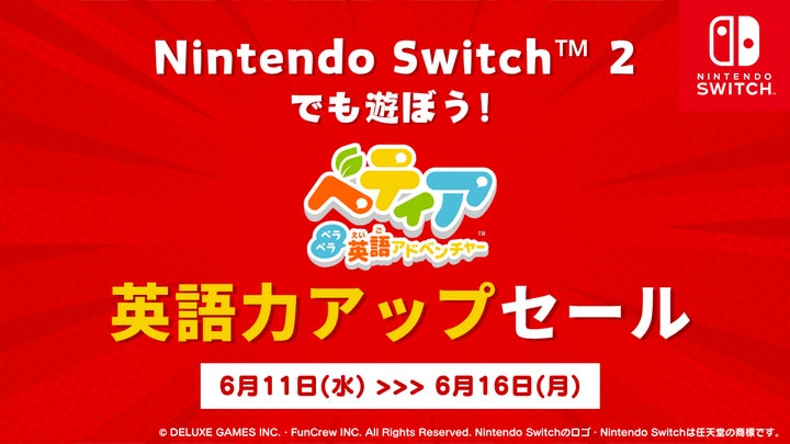 株式会社でらゲーが提供するNintendo Switch向け体験型英語学習ゲーム『ベティア ペラペラ英語アドベンチャー』が、Nintendo Switch 2の発売を記念してセールを開催する。