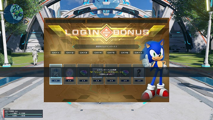 ログインボーナスでは、「ソニック」などのアクリルスタンド風ビルドパーツや、スペシャルスクラッチ券などを獲得可能。