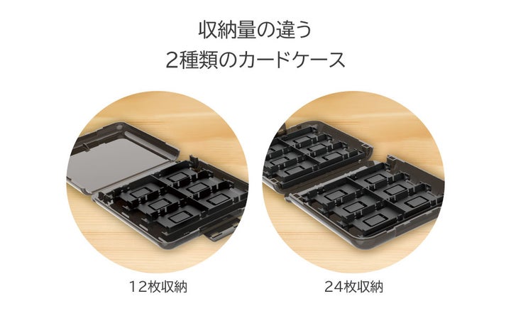 - 12枚/24枚収納、クリアブラック/クリアブルーの2色展開。