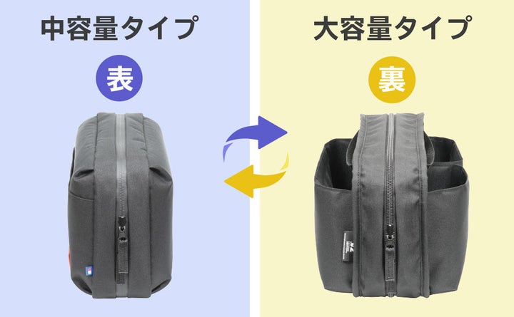 - リバーシブル仕様で、中容量と大容量の収納が可能