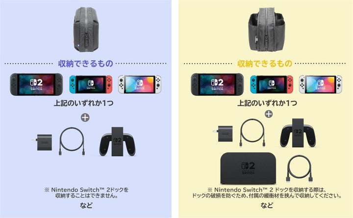 大容量タイプは、Nintendo Switch™ドックまたはNintendo Switch™ 2 ドックを収納でき、持ち運びにも便利。