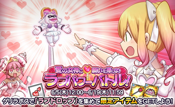 アクションパズルRPG『ケリ姫スイーツ』にて、「愛の女神に願いを捧げよ!ラブパワーバトル!」イベントが2025年6月5日(木)より開催されます。