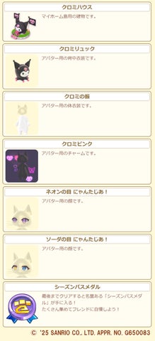 2025年6月8日まで、マイホーム島用の建物「クロミハウス」やアバター用衣装「クロミの服」などの豪華報酬を獲得できます。