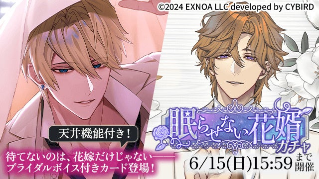 DMM GAMESは、オトナの女性向け恋愛ゲーム「夢幻楼と眠れぬ蝶」にて、ゲーム内ブライダルイベント「花嫁は初夜まで待てない」と「眠らせない花婿ガチャ」を開催する。