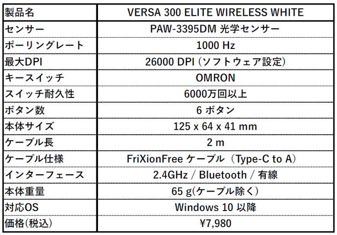 - VERSA 300 ELITE WIRELESS WHITE、VERSA 300 WIRELESS WHITE