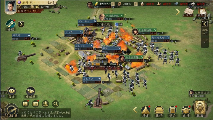 所属する大名勢力の仲間と協力し、領地拡大や天下統一を目指す。