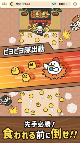 タップ操作でヒヨコを誕生させ、人間の町を侵略していく。