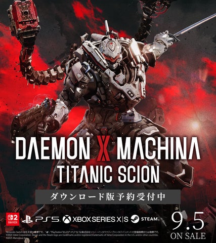 株式会社マーベラスより、Nintendo Switch 2、PlayStation 5、Xbox Series X|S、Steam向けメカアクションゲーム『DAEMON X MACHINA TITANIC SCION』のダウンロード版予約が開始された。