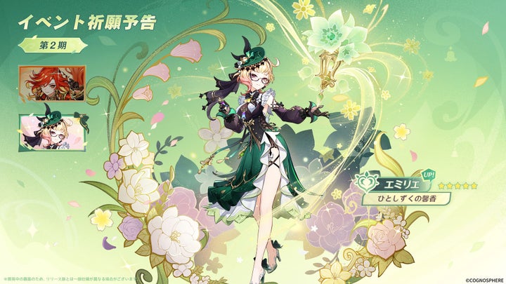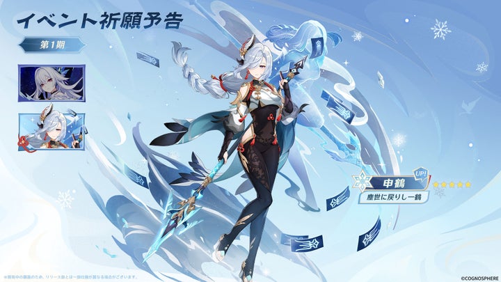 イベント祈願では「スカーク」「ダリア」に加え、「申鶴」が復刻。