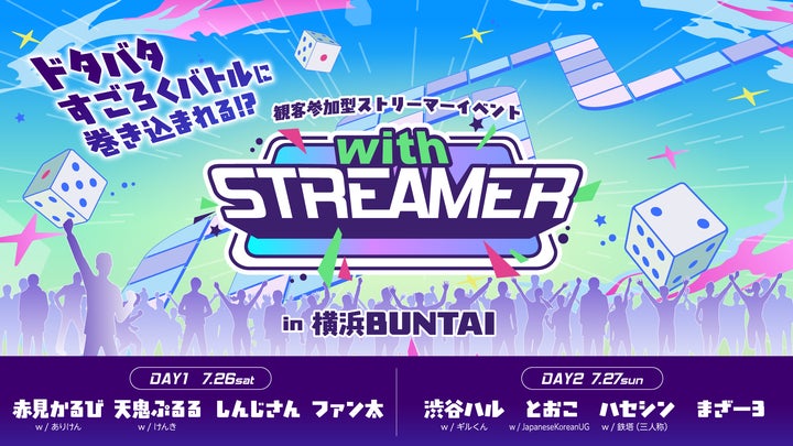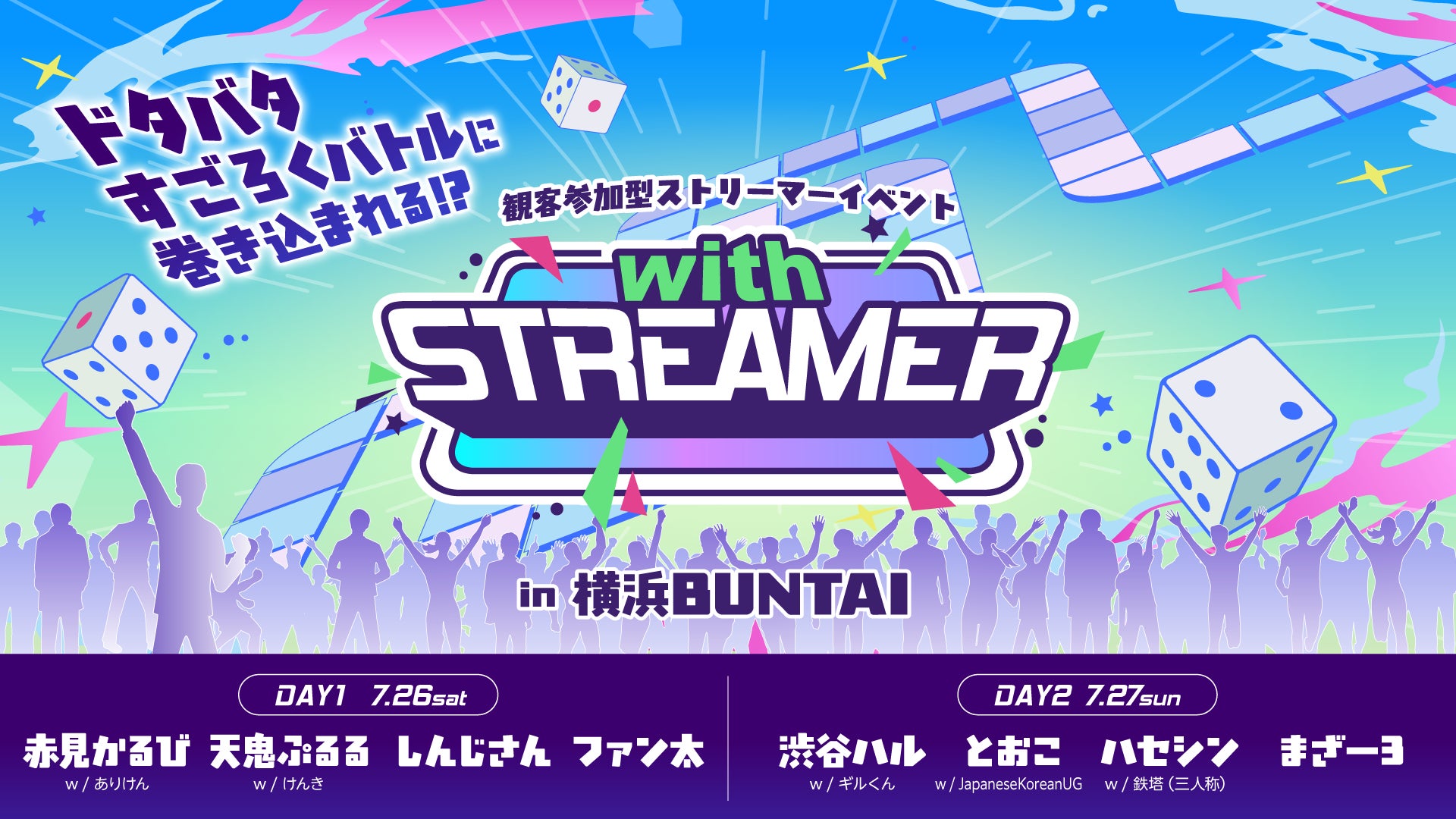 人気ストリーマーたちが集結する観客参加型イベント『with STREAMER』が、2025年7月26日(土)・27日(日)に横浜BUNTAIで開催されます。