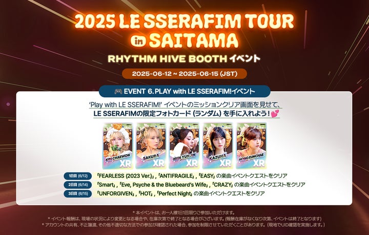 - プレイゾーン来場者には、LE SSERAFIMメンバー別カードや限定フォトカードプレゼント。