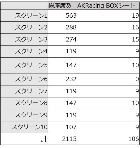 - 新宿ピカデリーにAKRacing BOXシート導入