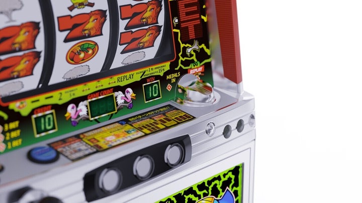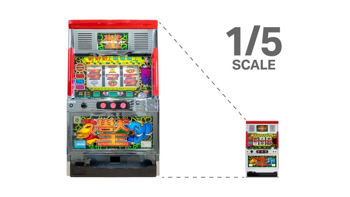 実機の約5分の1サイズながら、モーター制御リール、レバー、ボタン、本格的なゲームアルゴリズム、LED照明演出を再現。