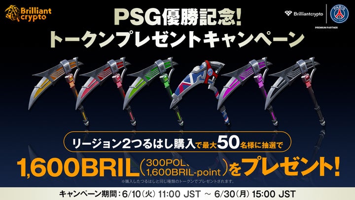 Brilliantcryptoが、欧州王者パリ・サンジェルマン(PSG)とのコラボレーション限定NFTつるはし「PSG Blue」を6月10日より販売開始します。