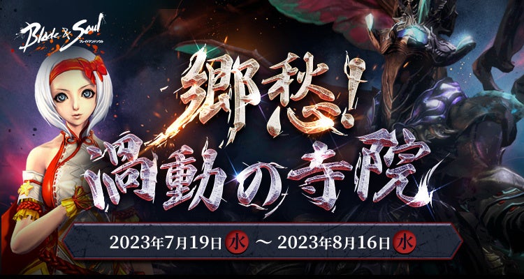 エヌ・シー・ジャパン株式会社は、PC向けオンラインゲーム『ブレイドアンドソウル』において、夏イベント「流浪団ゲーム 一対の架け橋」の開催、期間限定超強化「郷愁!渦動の寺院」の開催、新作水着「猛暑」を含む新衣装の登場を発表しました。