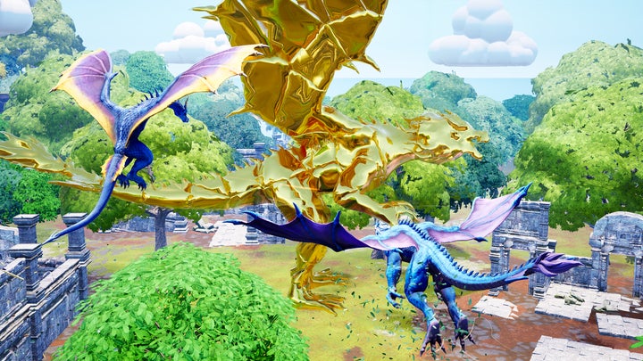 - プレイヤーはドラゴンに変身し、チームバトルで石像破壊を目指す。