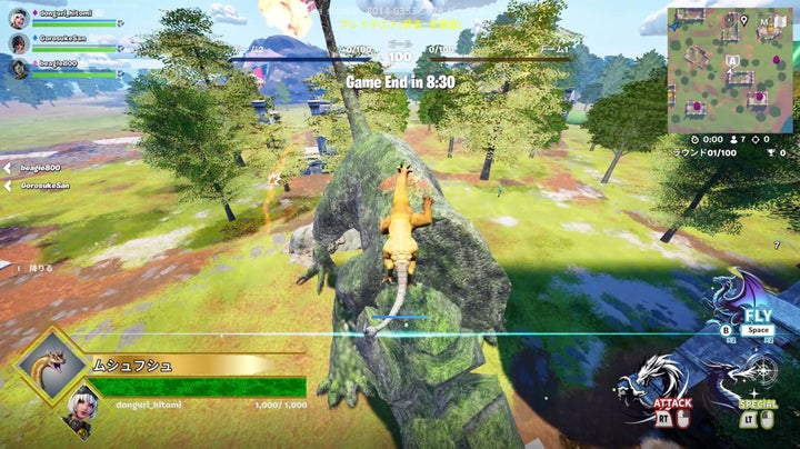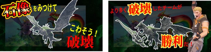- プレイヤーはドラゴンに変身し、バトルフィールドで石像を破壊して対戦。