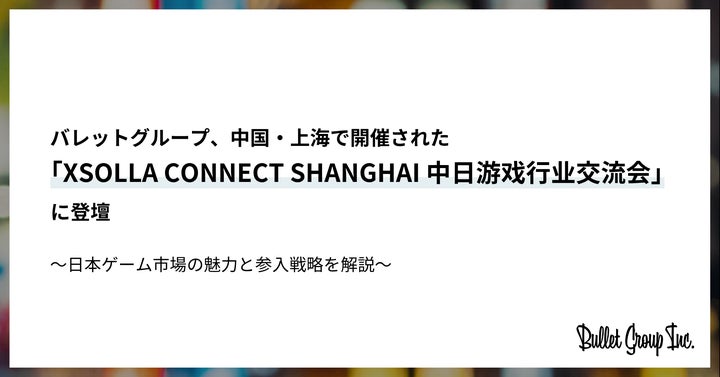 - バレットグループが「XSOLLA CONNECT SHANGHAI 中日游戏行业交流会」に登壇、日本市場参入を目指す中国ゲーム開発者向けに講演。