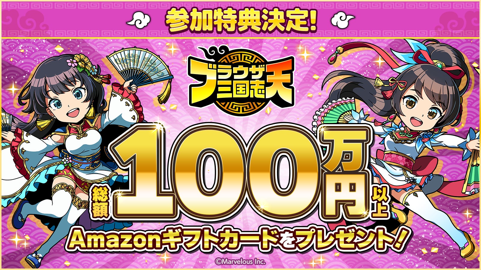 - 『ブラウザ三国志 天』クローズドネットワークテストの参加特典として、総額100万円以上のAmazonギフトカードをプレゼント。